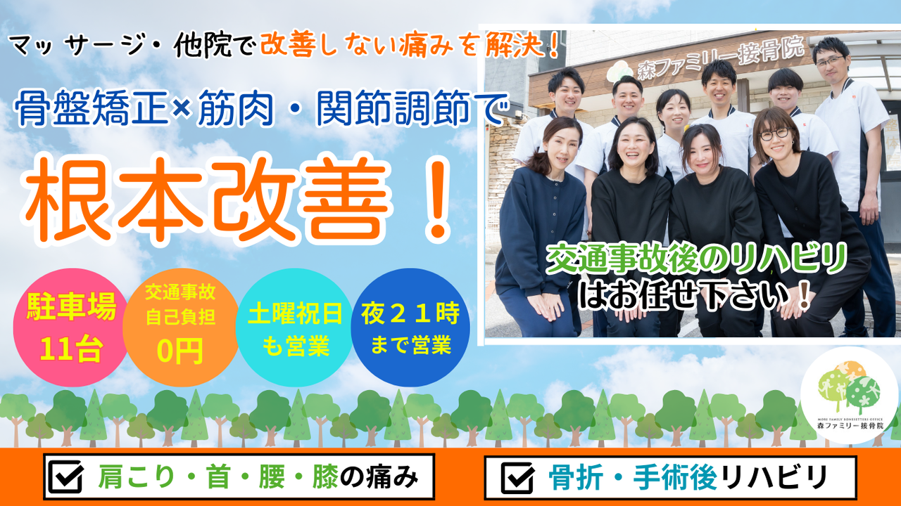 リハビリ治療が評判の森ファミリー接骨院(中川区・名古屋市港区)へご相談下さい。