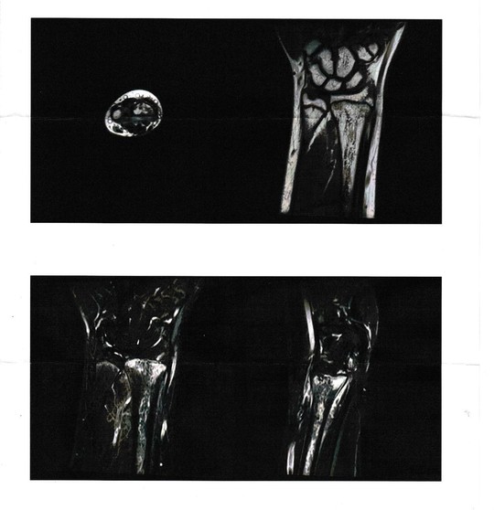 レントゲン・MRI画像上、左橈骨遠位端部の骨折ありと診断。